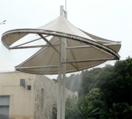 園區(qū)內(nèi)的膜結(jié)構(gòu)涼亭,似一把大傘給駐足休息的人們遮陽擋雨。