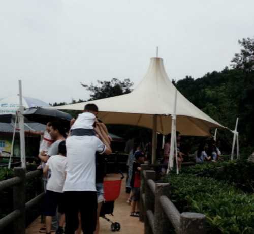 山頂?shù)幕ǘ湫尉坝^膜結(jié)構(gòu)小品,經(jīng)年累月鋼管上的油漆雖已脫落,仍不減風姿。