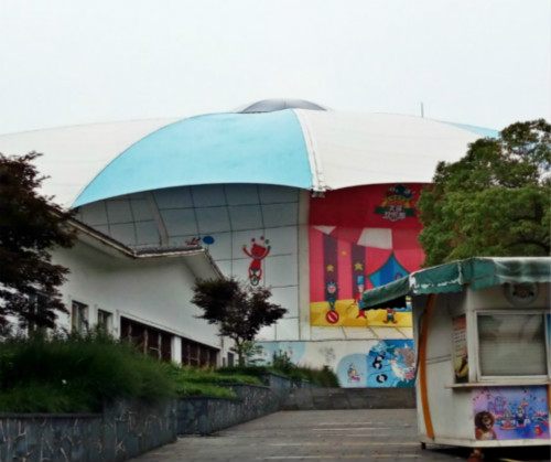 馬戲表演廳膜結(jié)構(gòu)穹頂,藍白相間的膜材顯得輕快活潑,身處其中覺得輕松敞亮。