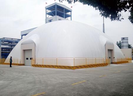 早在2015年,神華鄂爾多斯煤制油分公司就率先將氣膜建筑系統(tǒng)應(yīng)用于殘渣治理項目上。該公司每天產(chǎn)2400噸煤直接液化殘渣,以前采用散放、汽運方式轉(zhuǎn)運出廠,現(xiàn)場環(huán)境較差,且運行成本較高,環(huán)保壓力很大。按照環(huán)保規(guī)定的“防滲、防風(fēng)、防雨”的要求,該項目現(xiàn)有殘渣存放設(shè)施遠不能滿足要求。