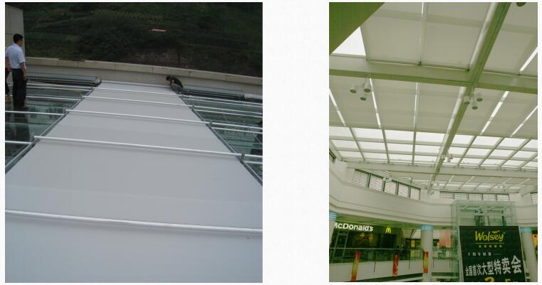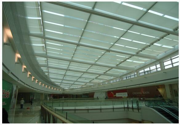 為滿(mǎn)足商業(yè)建筑造型及采光、節(jié)能的要求,玻璃幕墻及大跨度鋼架玻璃屋面被大量使用。因玻璃幕的高透光性,為了提高商業(yè)內(nèi)部環(huán)境的舒適感,常采用美觀、便捷靈活而又遮光隔熱的電動(dòng)遮陽(yáng)卷簾。