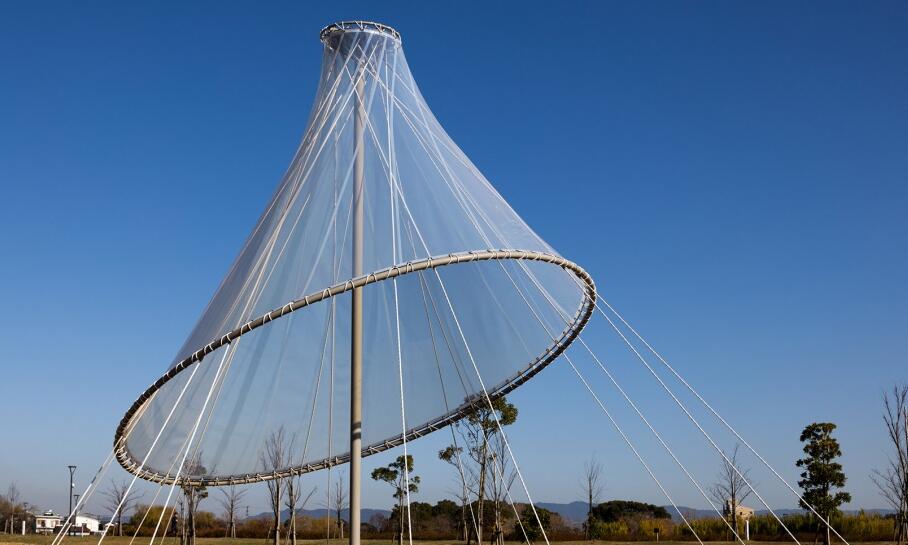 筑后廣域公園位于矢部川旁,是福岡縣面積最大的公園。隈研吾事務(wù)所在這座公園內(nèi)設(shè)計了一組輕盈透明的膜結(jié)構(gòu)裝置。