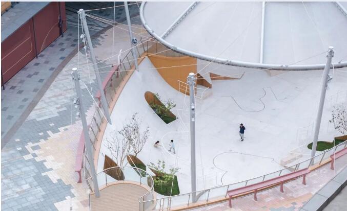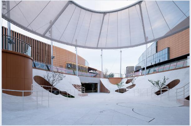 但不管怎么有格調(diào)的下沉廣場,它也是一個(gè)半露天的公共空間,如果缺乏遮陽避雨設(shè)施,無法提供更加舒適的休閑環(huán)境,因此,在下沉廣場上方增設(shè)頂蓋是非常必要的,而且一個(gè)兼具美觀、時(shí)尚、實(shí)用的頂蓋也是建筑的加分項(xiàng)。