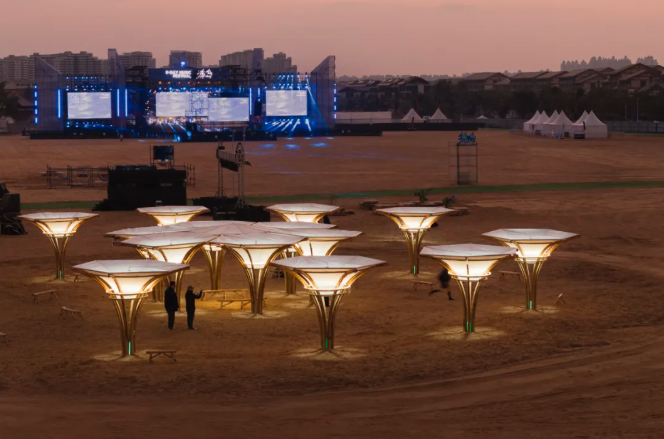 當(dāng)音樂節(jié)落幕,這些裝置將被拆解為獨(dú)立單元,可重組為新的藝術(shù)裝置場(chǎng)景,讓藝術(shù)擺脫一次性消耗的宿命,轉(zhuǎn)而成為可循環(huán)的建筑載體。