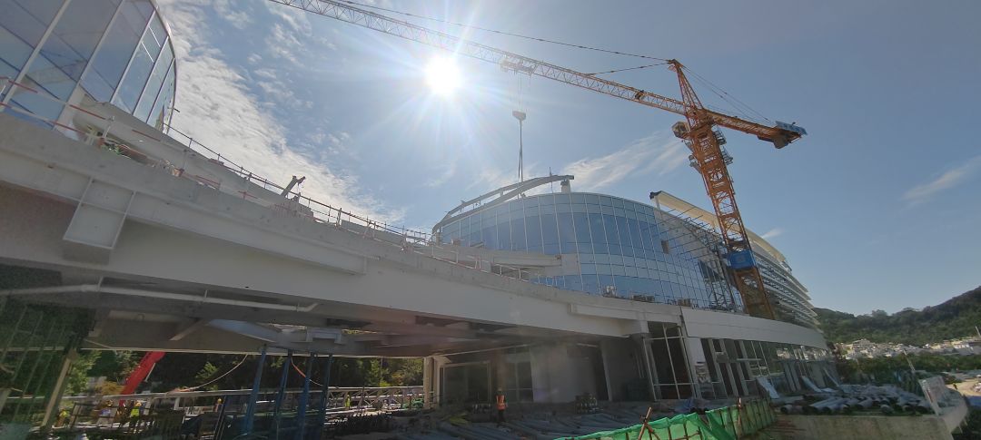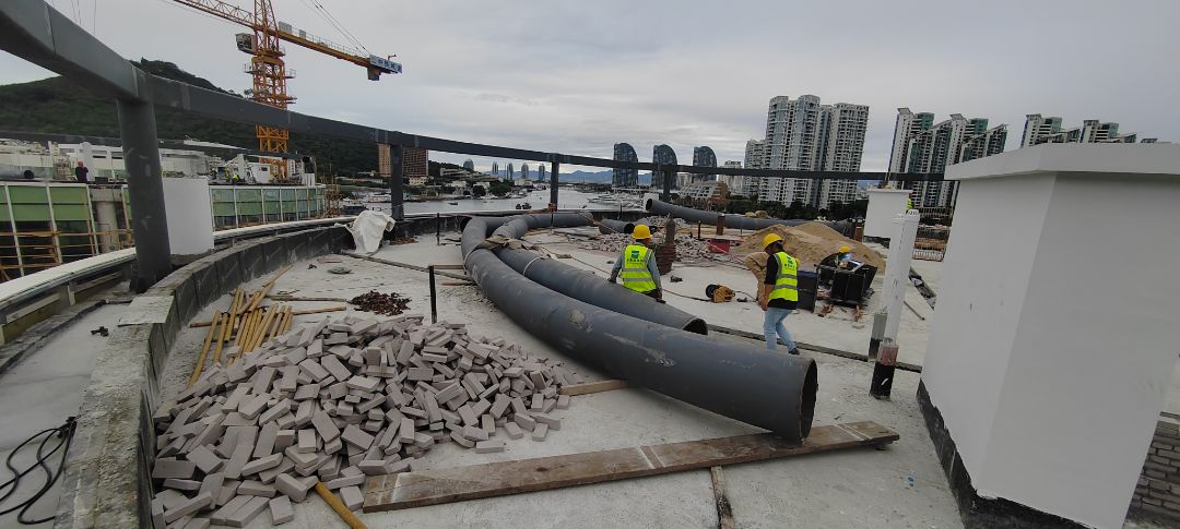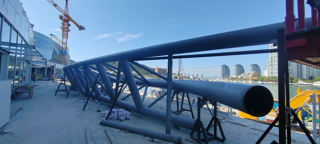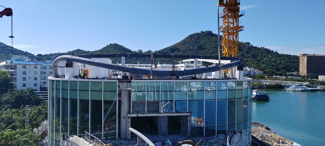 三亞南邊海國際游艇薈膜結構屋頂工程近日正在緊張有序地施工,材料均已進場并進行安裝。該工程采用鋼骨架馬鞍形張拉膜結構型式,上覆ETFE膜材,工程面積約1100平方。