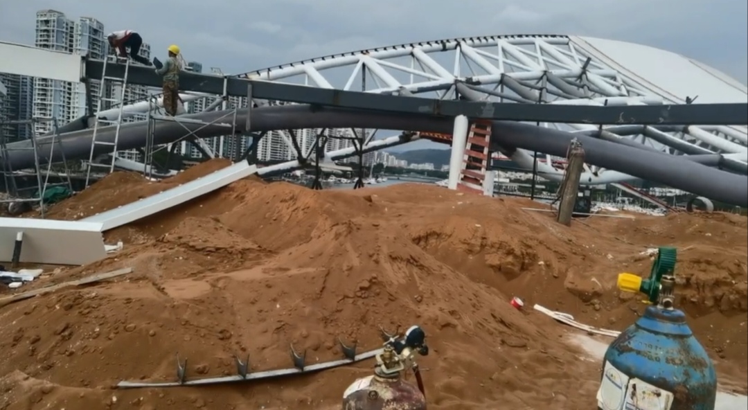 三亞南邊海國際游艇膜結(jié)構(gòu)屋頂項(xiàng)目近日正在進(jìn)行覆膜工作。