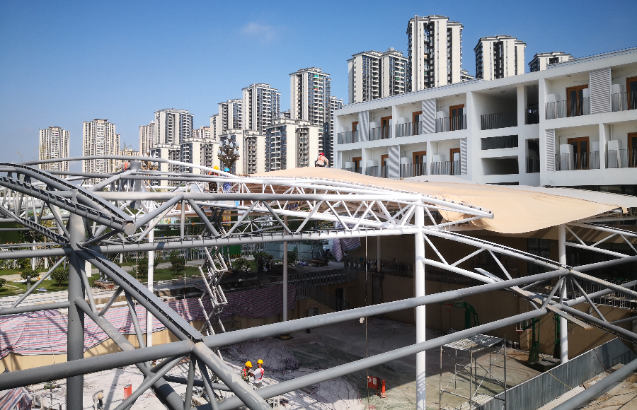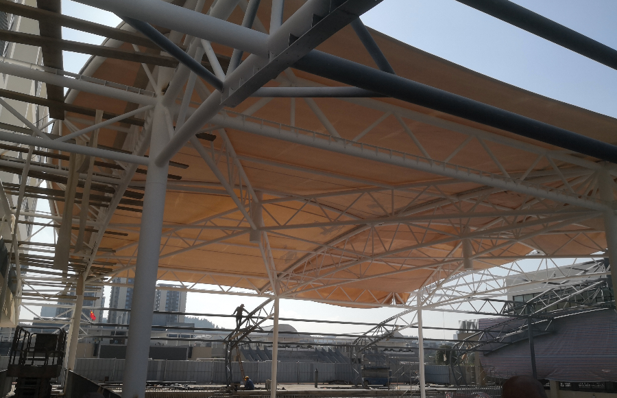 雙流二手車市場膜結(jié)構(gòu)工程施工進(jìn)展