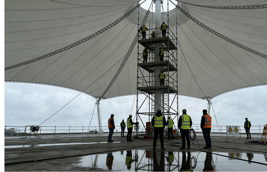 嵐皋村BA籃球場膜結構屋頂工程進展