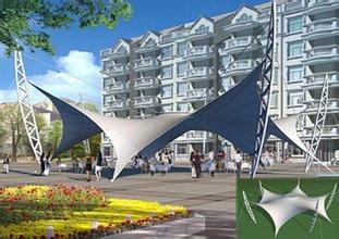柔性邊界膜結(jié)構(gòu)是指以鋼索等柔性材料為邊界的一類膜結(jié)構(gòu)。由于邊界為優(yōu)美的弧形,加之造型只有,因而深得建筑師的喜愛。柔性邊界膜結(jié)構(gòu)的外形可以是馬鞍形,傘形,波浪形,或是件這些基本外形加以組合的自由造型。輔以鋼索或桅桿等適當?shù)膬?nèi)部支承,柔性邊界的膜結(jié)構(gòu)可以形成大面積的覆蓋空間,如下圖:
