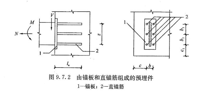 預(yù)埋件的受力直錨筋直徑不宜小于8mm,且不宜大于25mm。直錨筋數(shù)量不宜少于4根,且不宜多于4排。受拉直錨筋的錨固長(zhǎng)度計(jì)算確定,受剪和受壓直錨筋的錨固長(zhǎng)度不應(yīng)小于15d,d為錨筋的直徑。