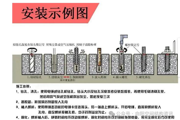 化學(xué)錨栓的化學(xué)藥劑管,是由乙烯基樹脂、石英砂顆粒和固化劑組成,通過合成樹脂砂漿粘合螺桿,使螺桿和孔壁之間形成粘接力,與被錨固對(duì)象形成一個(gè)整體,從而達(dá)到固定構(gòu)件和提高構(gòu)件承載力的作用。